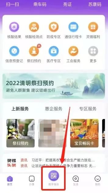 (二)进入“灵锡”APP,首页点击“数字身份”→“添加证照”→“居家健康监测证明”。
