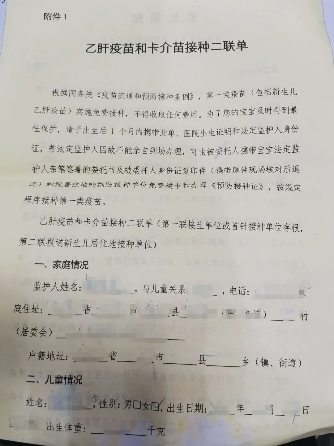 第一:出生医院出具的乙肝卡介苗接种二联单。