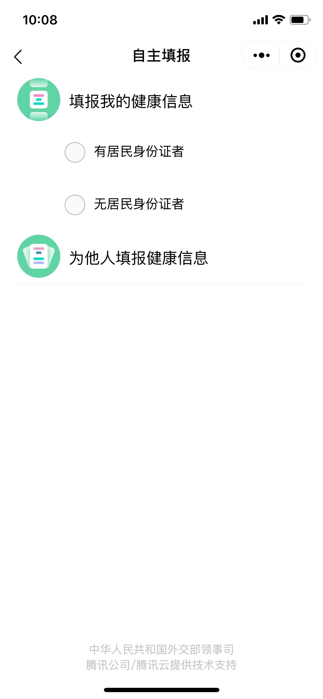 如有身份证,须按“有居民身份证者”填报并进行实名认证。如果没有身份证,可选择“无居民身份证者”入口,使用护照(或旅行证)进行填报,并需按程序提示上传相关照片以便进行实名认证。