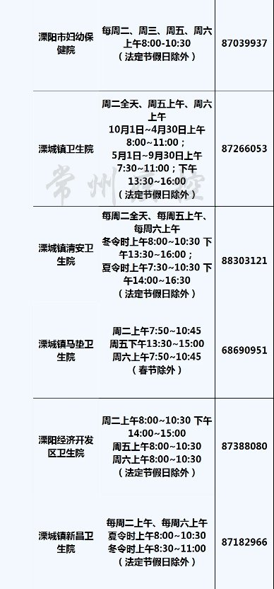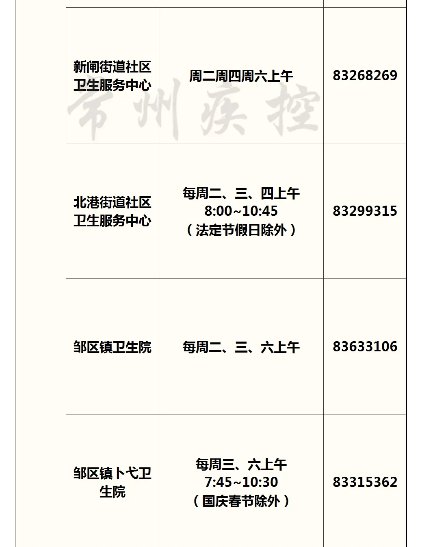 2021年常州市儿童预防接种门诊信息一览表: