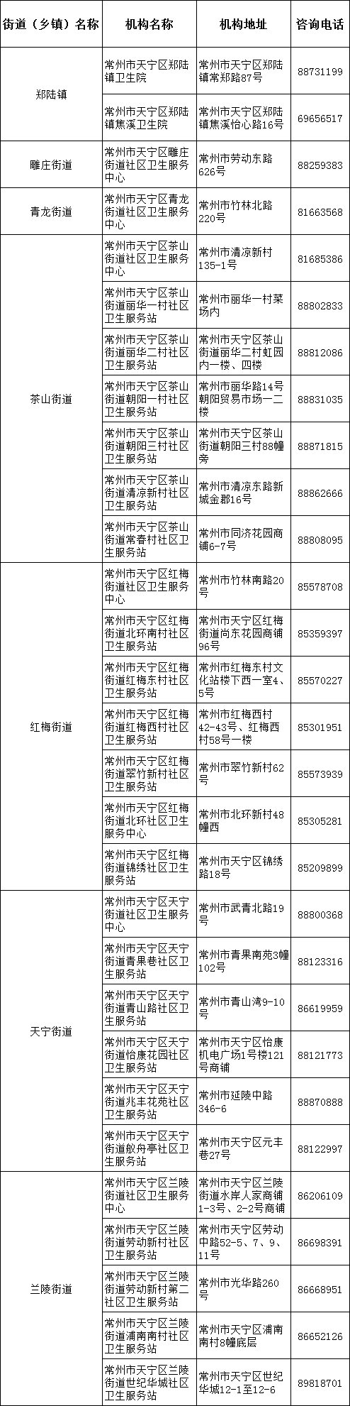 天宁区65岁及以上常住居民体检机构一览表