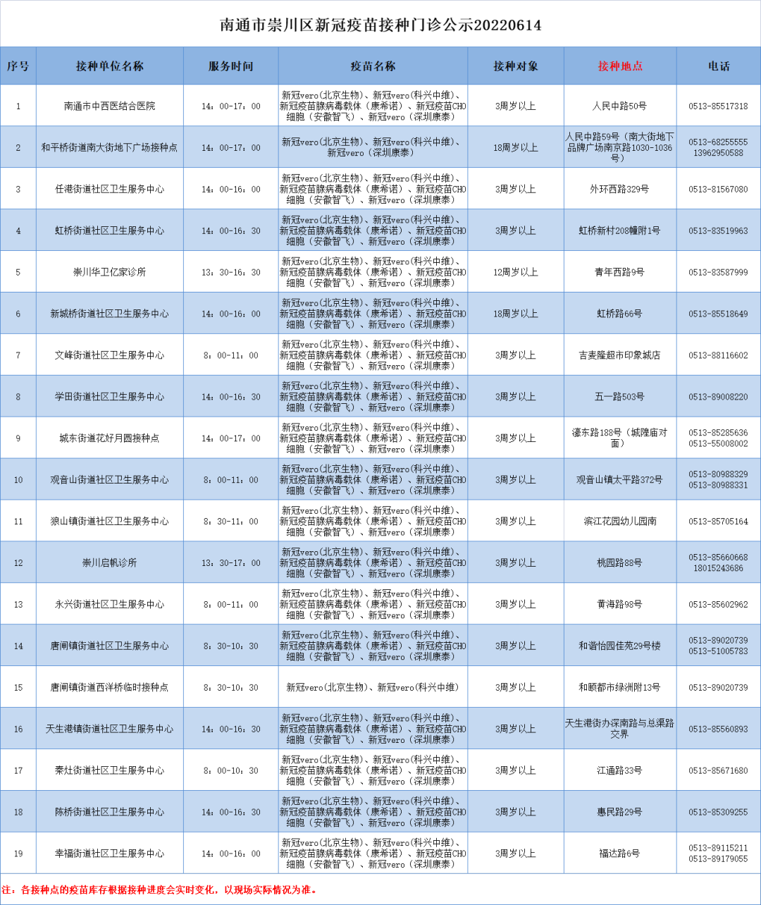 8、各接种点的疫苗库存根据接种进度会实时变化,以现场实际情况为准。详情可与接种单位在工作时间咨询联系。