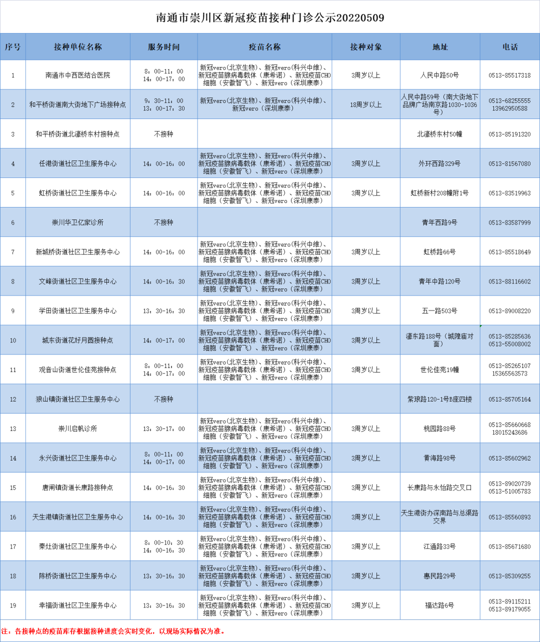 8、各接种点的疫苗库存根据接种进度会实时变化,以现场实际情况为准。详情可与接种单位在工作时间咨询联系。