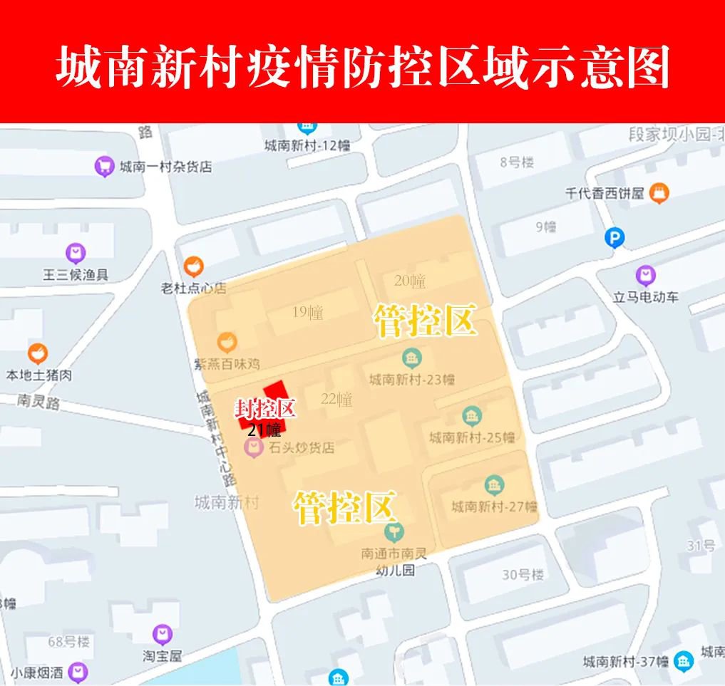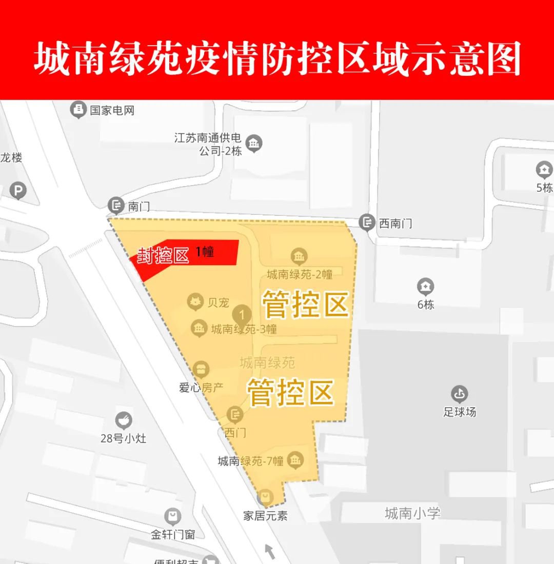 截至目前,崇川区仍采取封控管控措施的区域为城南新村(18幢、19幢、20幢、21幢、22幢、23幢、25幢、27幢、南灵幼儿园)、南川园新村(39幢、40幢、41幢、43幢、44幢、45幢)、城南绿苑小区、天和景居小区。
