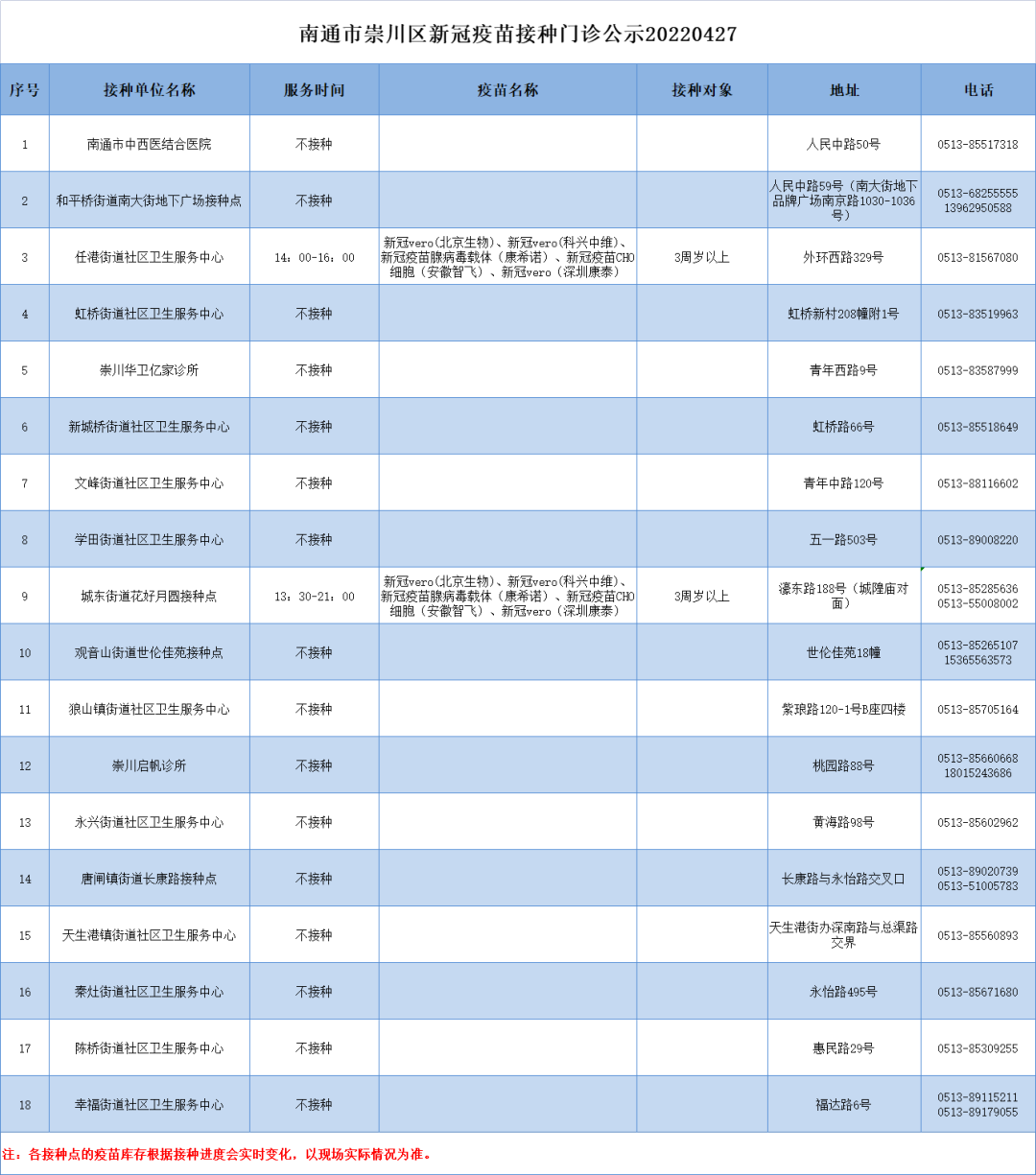 8、各接种点的疫苗库存根据接种进度会实时变化,以现场实际情况为准。详情可与接种单位在工作时间咨询联系。