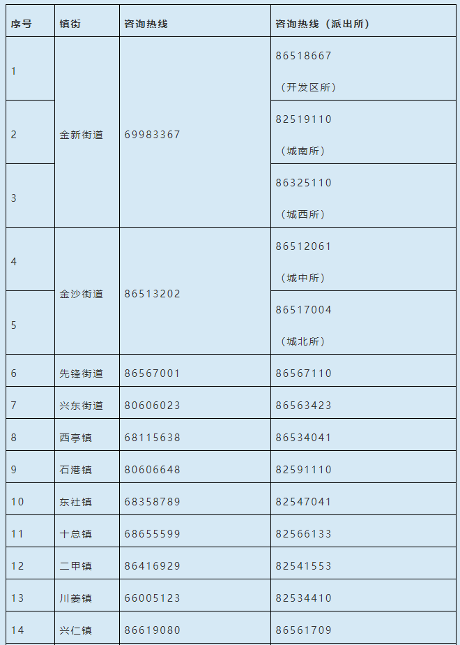 为迅速阻断疫情传播,南通通州区近期对部分小区楼栋或地方区域进行了临时封闭管控。由于封控、管控前没有足够的告知时间,从而给部分市民生活带来不便。为进一步畅通广大市民诉求渠道,及时提供优质便民服务,通州区在设立社区咨询热线基础上,同步开设各镇街和派出所咨询热线。具体公布如下: