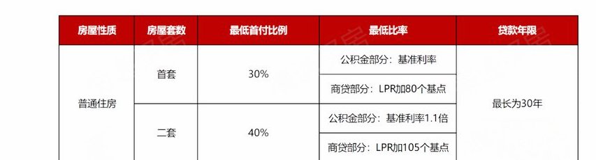 2.首付比例:首套房首付比例为30%。首套房公积金贷款还清后,二套房才可使用公积金,首付比例为40%;