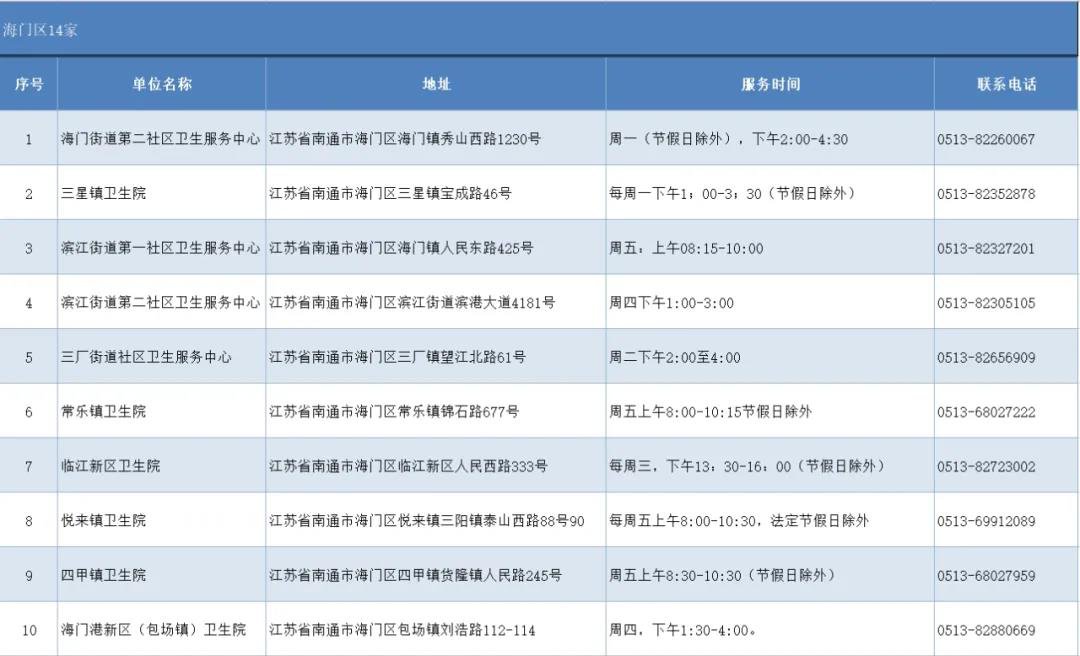 海门区:14家成人预防接种单位。