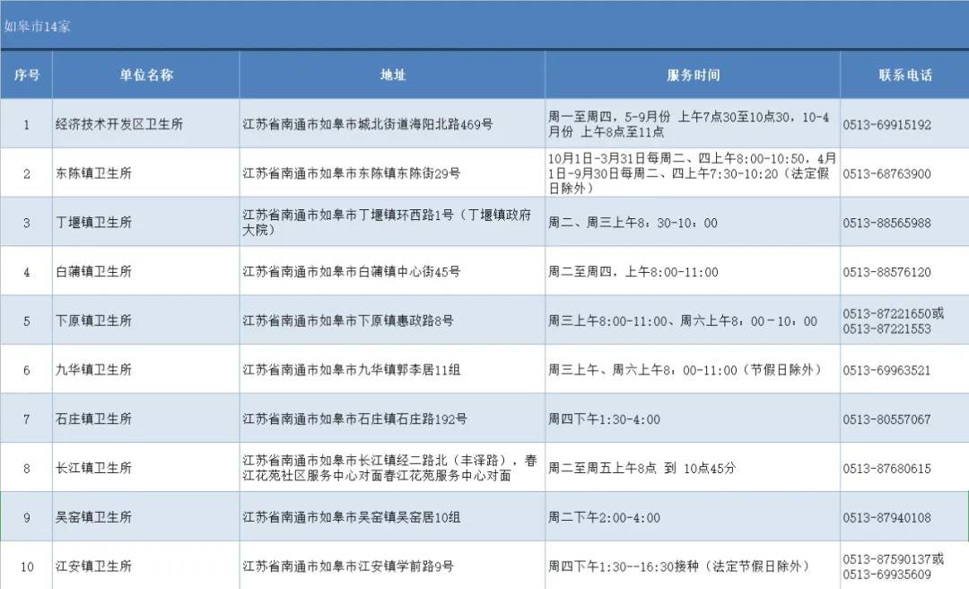 如皋市:14家成人预防接种单位。