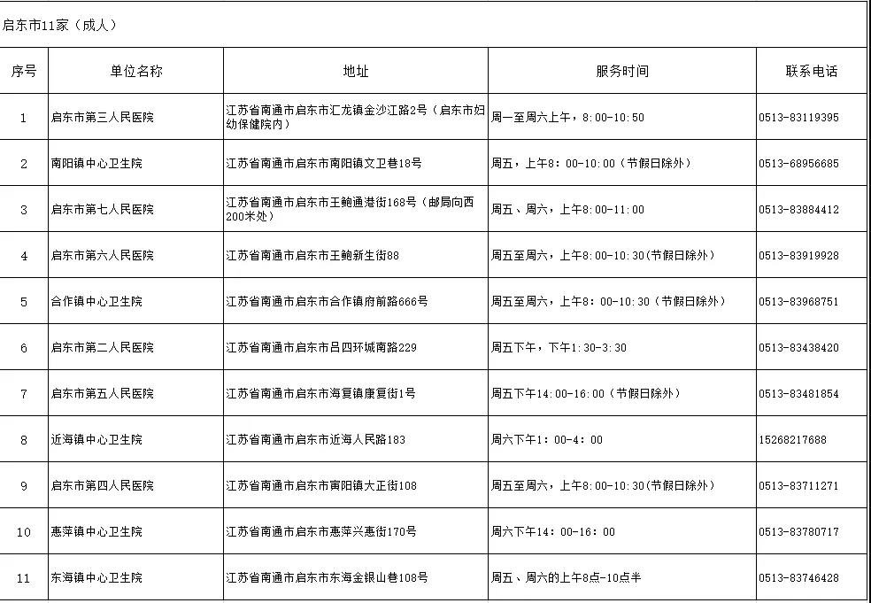 启东市:11家成人预防接种单位。