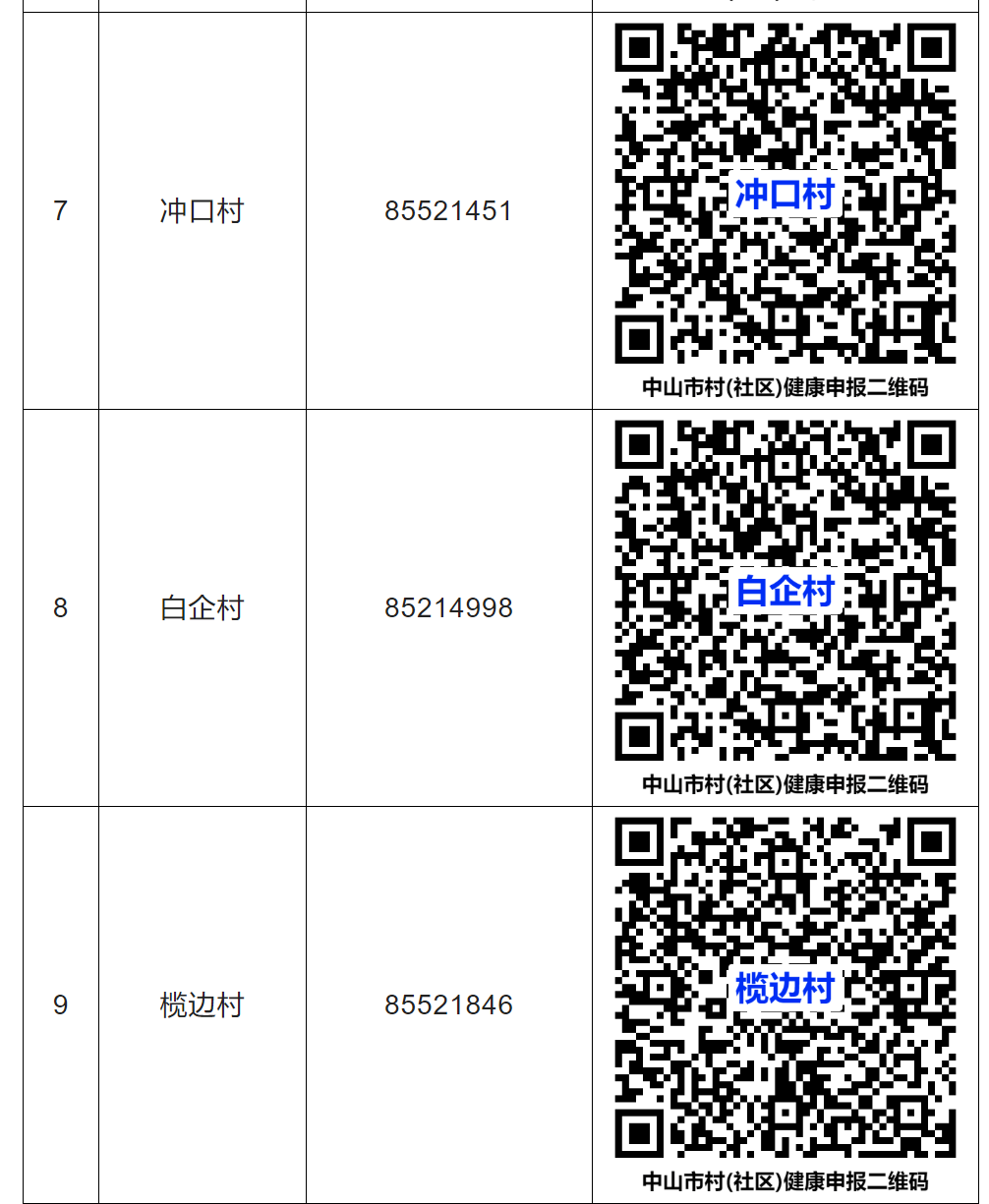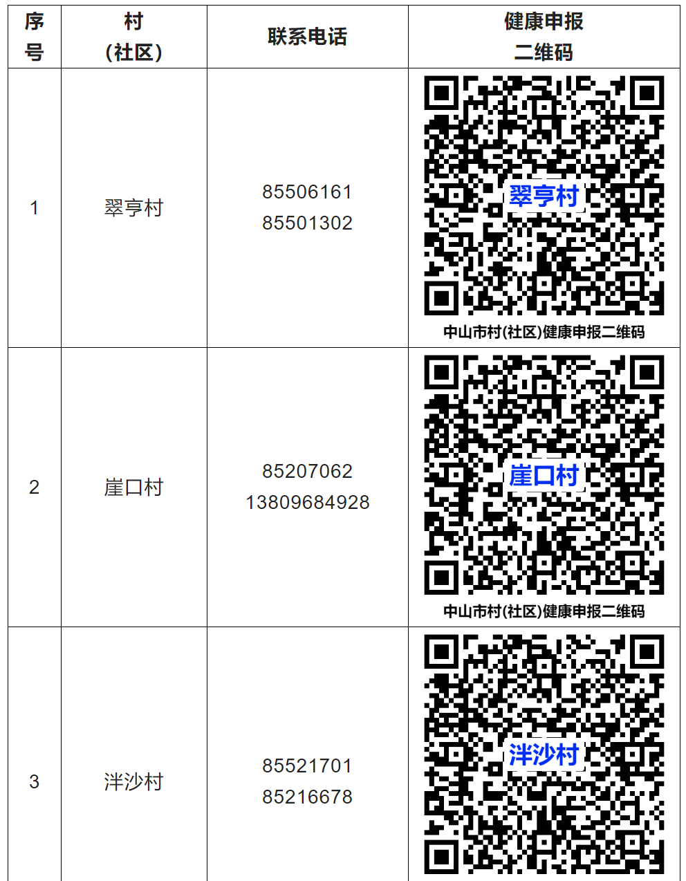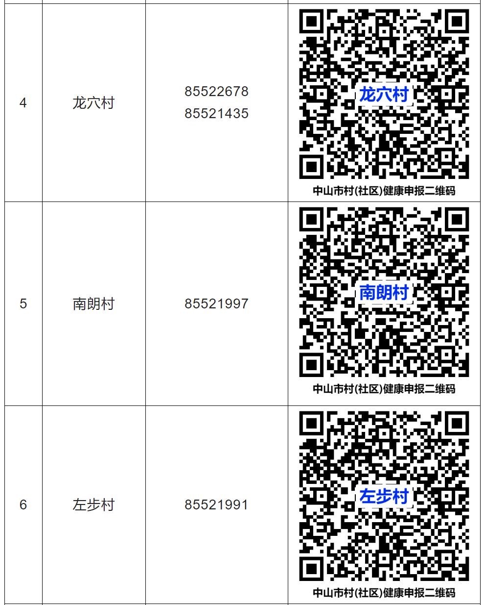 在翠亨新区(南朗街道)居住的人员请扫各村(社区)的二维码