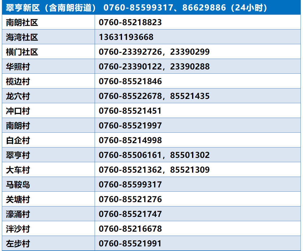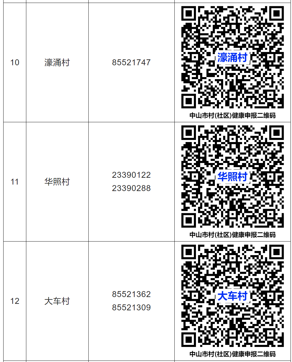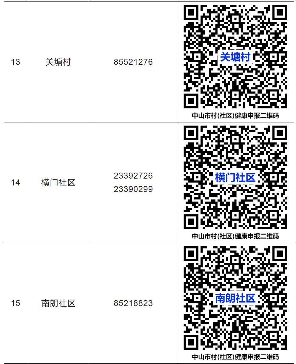 在翠亨新区(南朗街道)居住的人员请扫各村(社区)的二维码