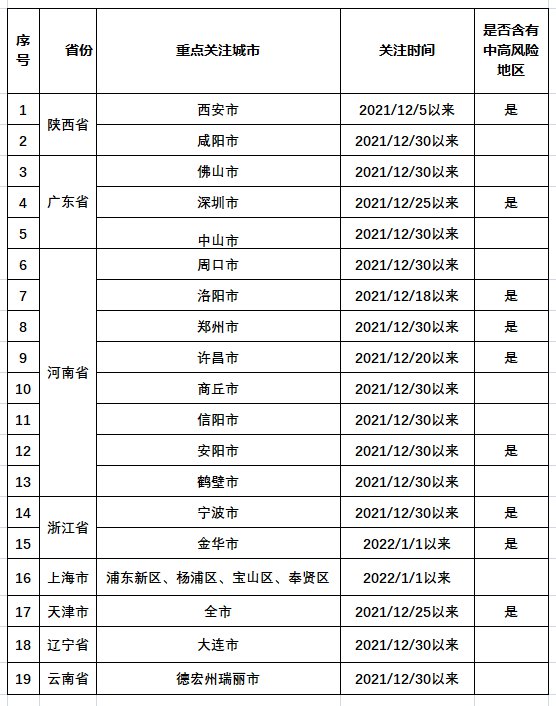 国内疫情相关地区(截至2022年1月13日下午16时)