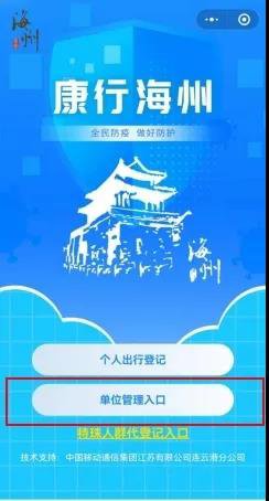 “康行海州”通行登记系统操作说明(单位二维码申请)