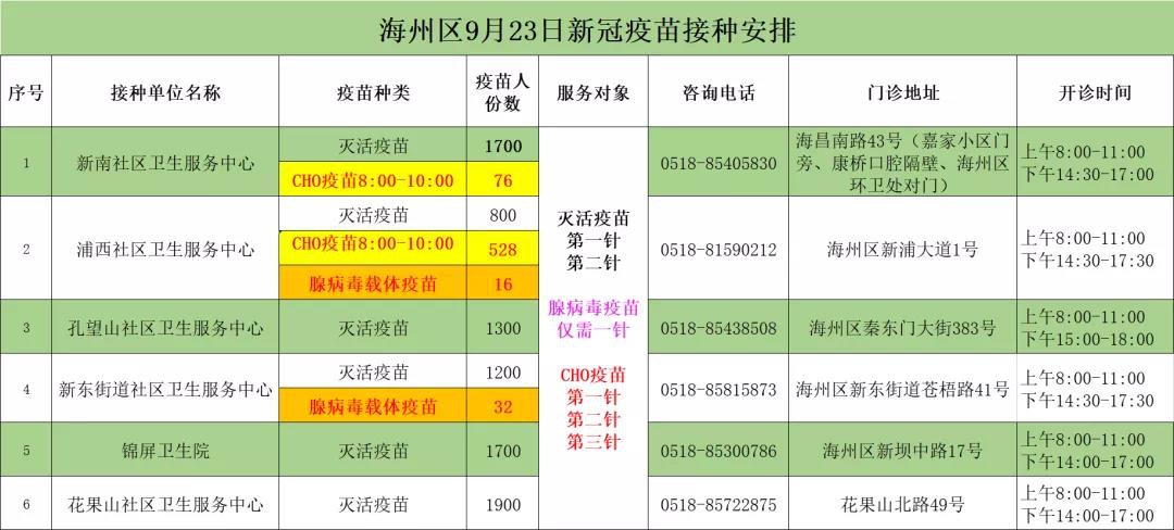 4.海州区新到一批腺病毒载体新冠疫苗,只需接种1针,没有接种过新冠疫苗的市民可以前往接种腺病毒载体新冠疫苗!