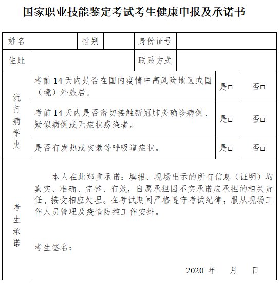 5、打印《疫情防控承诺书》并签字,承诺书在考试当天交给考务人员。