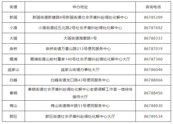 各街道积分申办地址及咨询电话