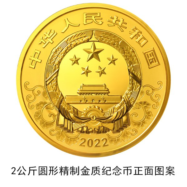 (二)2公斤圆形金质纪念币为精制币,含纯金2公斤,直径110毫米,面额20000元,成色99.9%,最大发行量50枚。