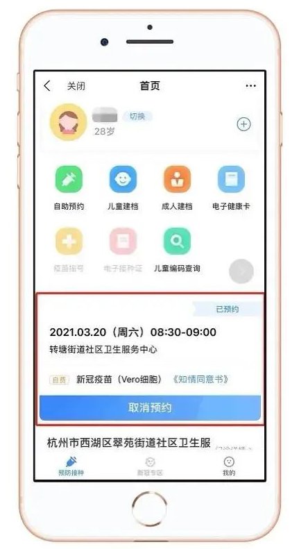 返回主页后即会显示已经预约好的时间及相关信息。如果不能前往请及时取消预约以避免造成影响。