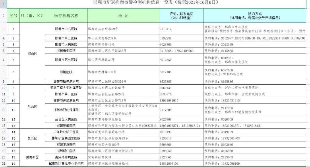10月5日(含)以来途经甘肃省兰州市城关区,10月6日(含)以来途经内蒙古锡林郭勒二连浩特市,10月6日(含)以来途经内蒙古阿拉善盟额济纳旗,10月10日(含)以来途经甘肃省张掖市,10月11日(含)以来途经内蒙古自治区阿拉善盟,10月14日(含)以来途经甘肃省嘉峪关市,10月15日(含)以来途经陕西省西安市雁塔区,10月16日(含)以来途经宁夏回族自治区银川市金凤区、兴庆区,10月16日(含)以来途经保定市莲池区,10月17日(含)以来途经湖南省长沙市,10月18日(含)以来途经甘肃省兰州市,10月18日(含)以来途经贵州省遵义市,10月18日(含)以来途经北京市丰台区,10月18日以来途经青海省海东市平安区,10月19日(含)以来途经河北省邢台市信都区,10月20日以来途经湖北省天门市,以及健康码异常(黄码或红码)的来(返)邯郸人员,要主动到所在社区(村)和单位报告,配合健康监测、核酸检测等防控措施。对因瞒报、谎报个人相关情况造成严重后果的人员,将依法依规追究责任。