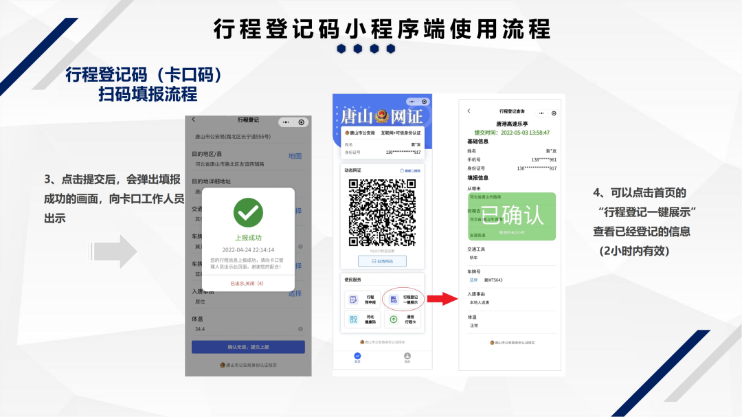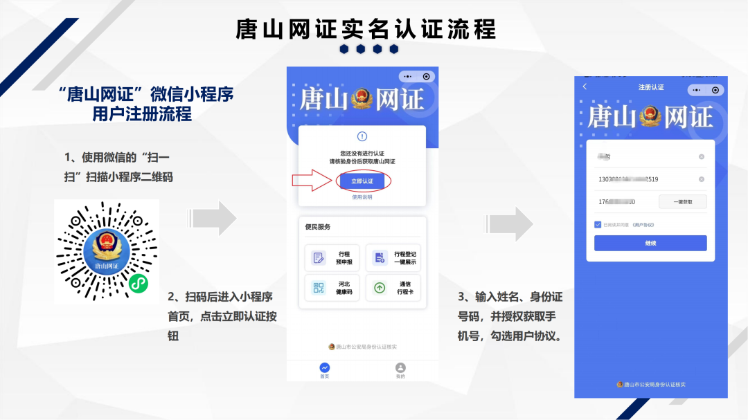 一、为进一步做好疫情防控和服务对接工作,请县外来(返)乐人员提前下载“唐山网证”小程序,并完成注册和身份认证,完整登记“唐山网证”小程序,目的地必须填写乐亭及所去镇乡街园或冀东果菜批发市场。(具体操作流程附后)