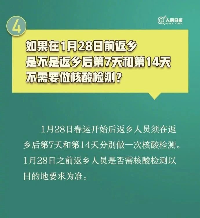 ①持核酸检测阴性证明返乡从1月28日春运开始后实施,至3月8日截止。1月28日之前返乡人员是否需核酸检测以目的地要求为准;