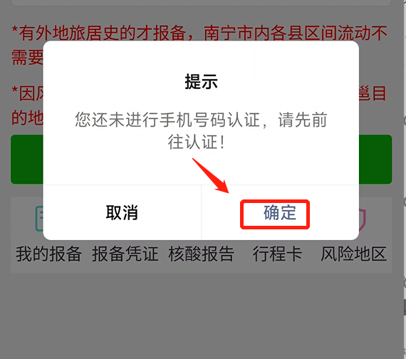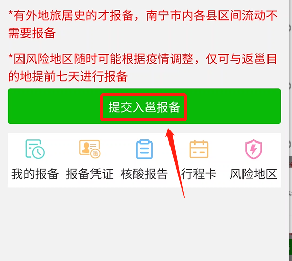 2、完成手机认证、实名认证,点击“提交入邕报备”按钮。