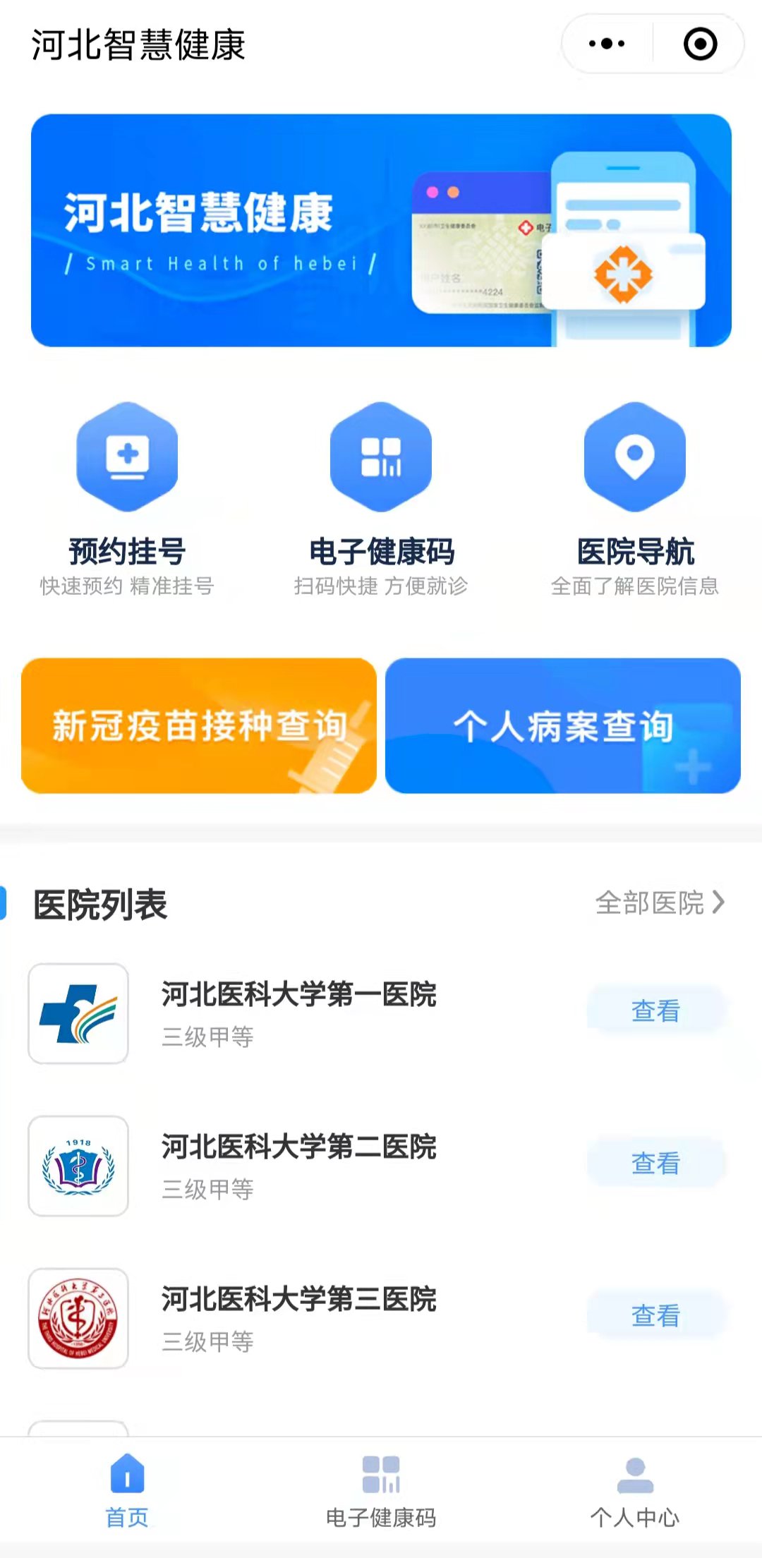 1、搜索“河北智慧健康”小程序,点击“新冠疫苗接种查询”即可