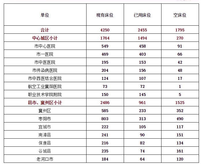 襄阳市区定点医院病床使用情况(截至2月9日22时)