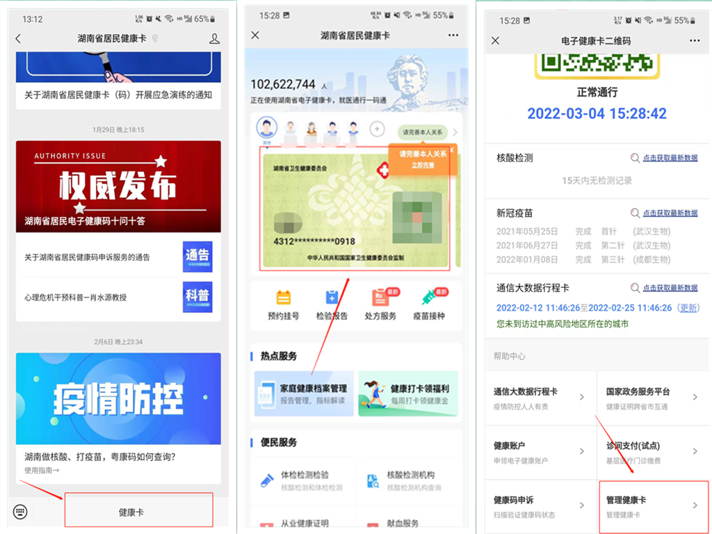 1、“管理健康卡”功能入口
