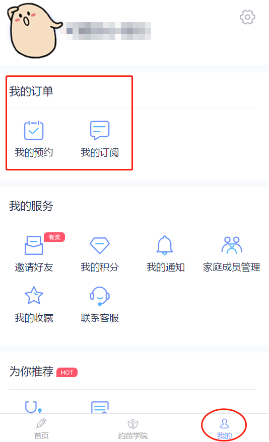 在预约界面中,点击【我的】,即可在【我的订单】中查看【我的预约】、【我的订阅】等信息。