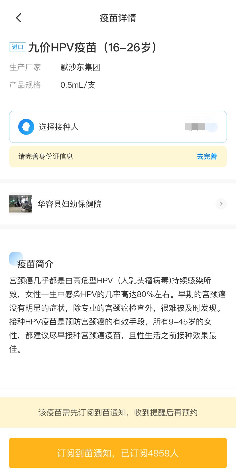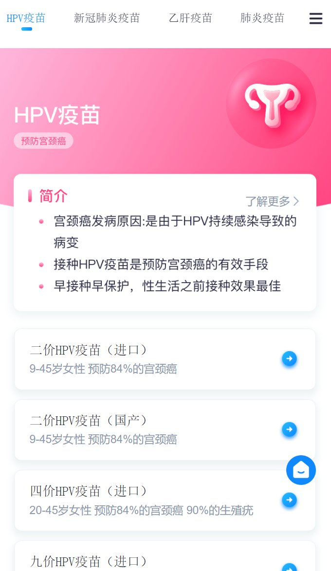 2、首页点击『HPV疫苗』,进入HPV疫苗预约专区;