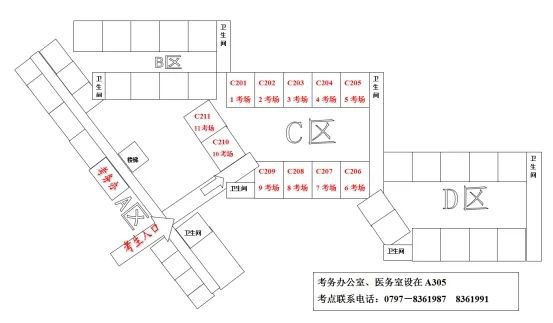 (2)入考点流程:进考点时必须出示准考证、有效身份证、“赣通码”绿色健康码、绿色通信行程码和“健康承诺书”、要求做核酸的考生考前48小时内(12月23日(含)以后)的核酸检测阴性报告。通过核验入校检查材料和体温检测后,考生方可进入考点参加考试。