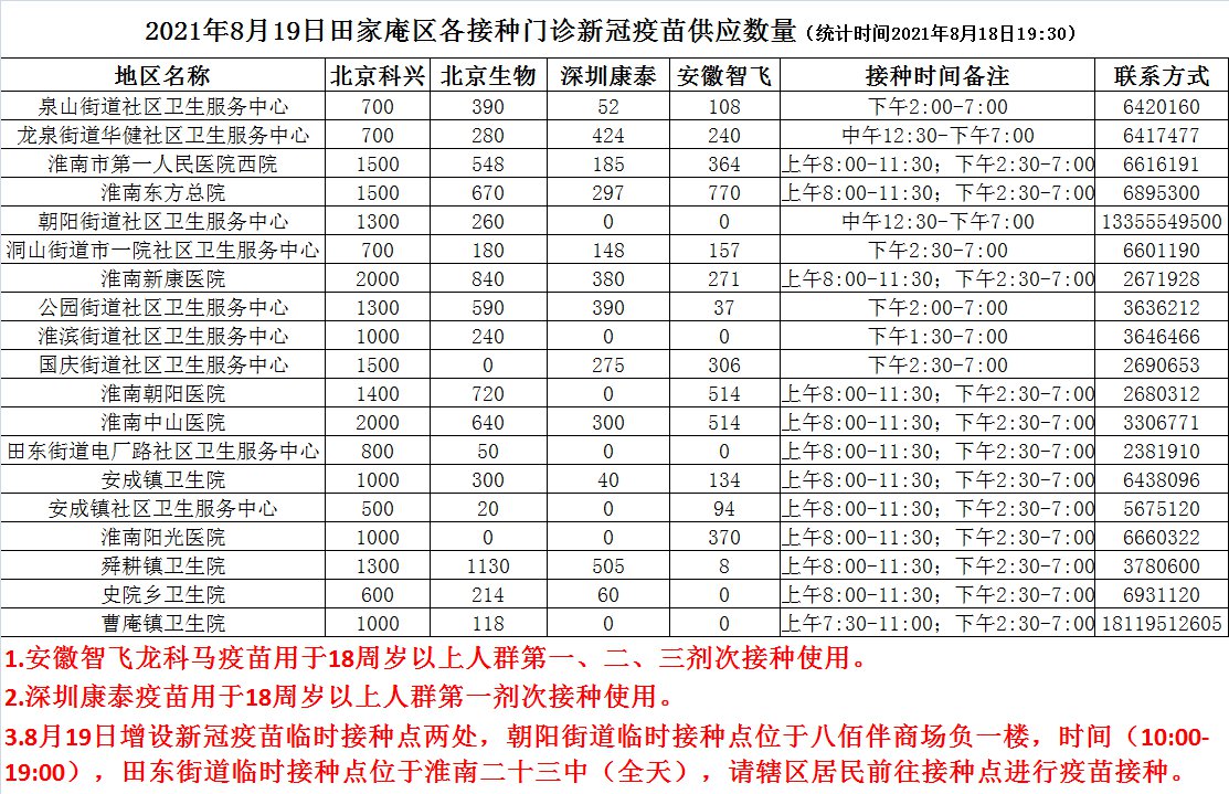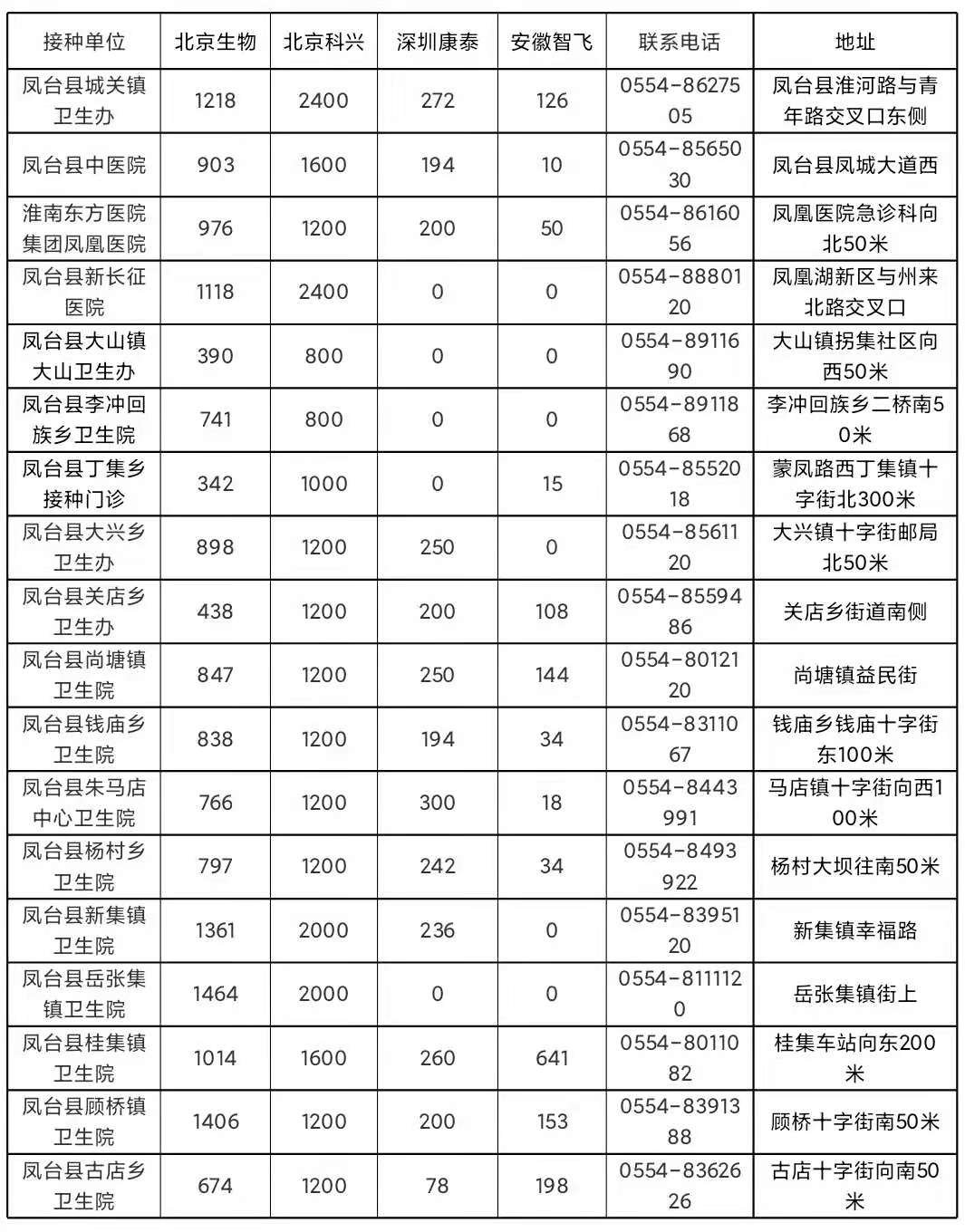 淮南市各区县接种点疫苗供应19日已更新(信息来源于皖事通)