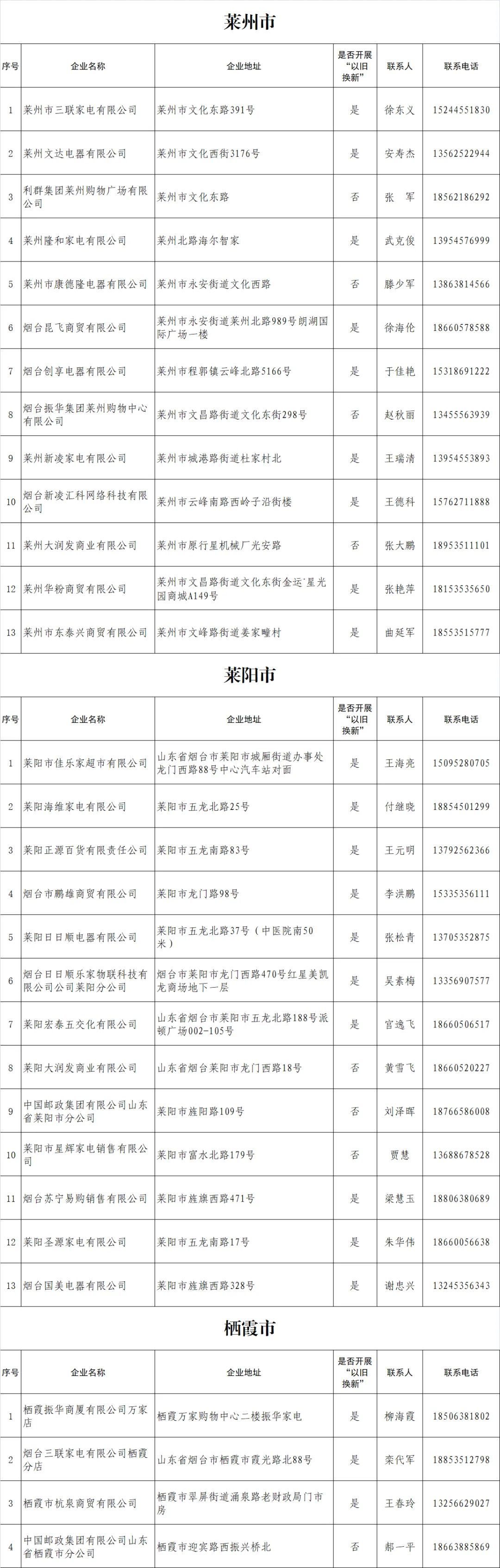 烟台市家电消费券参与企业名单公布