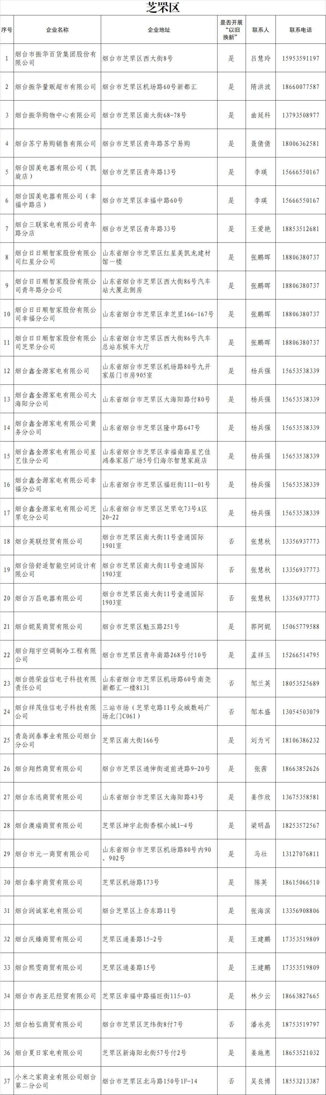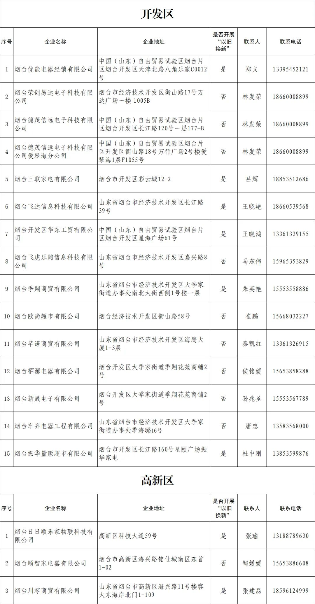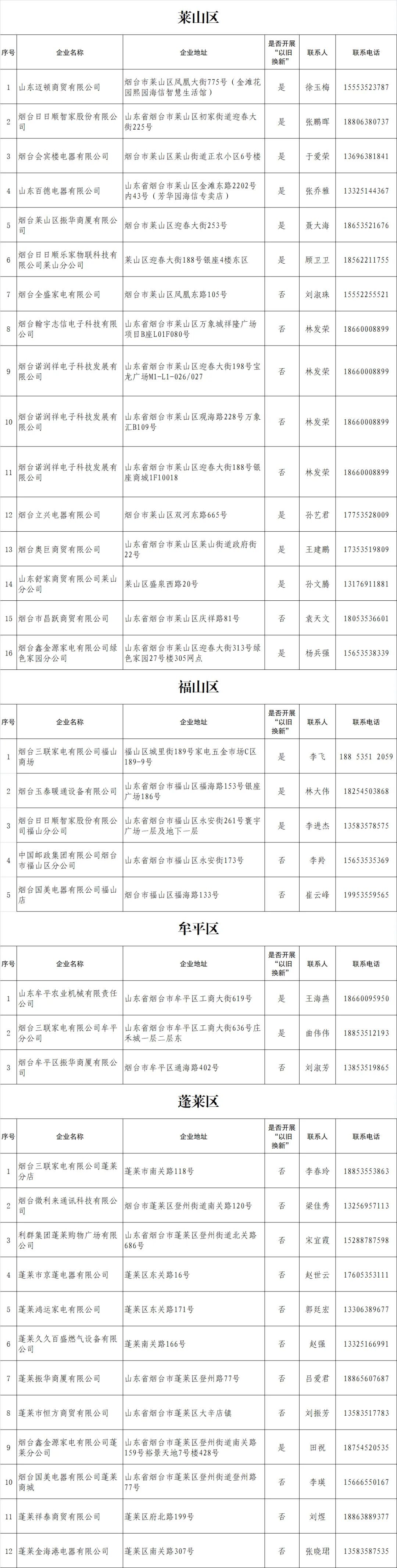 烟台市家电消费券参与企业名单公布