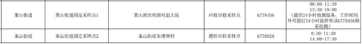 烟台莱山区莱山街道核酸检测采样点有哪些?