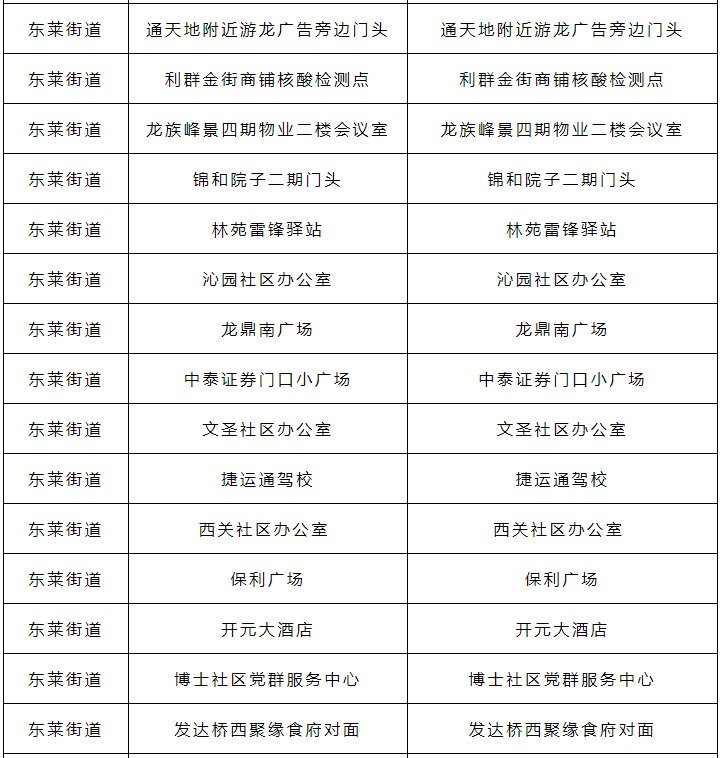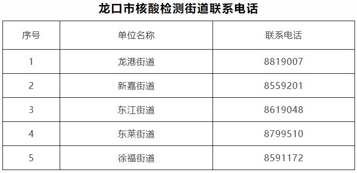 2022年3月12日龙口市各街道核酸筛查采样点调整