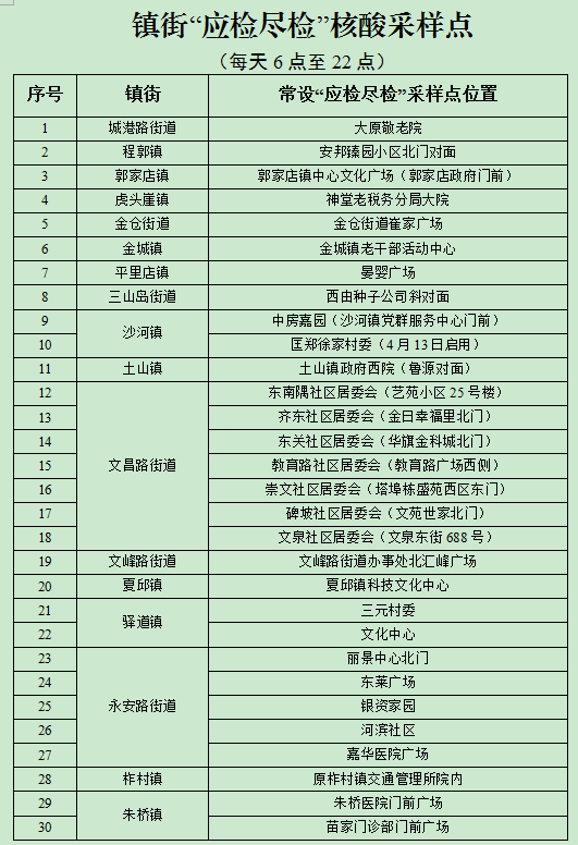 莱州市镇街“应检尽检”核酸采样点