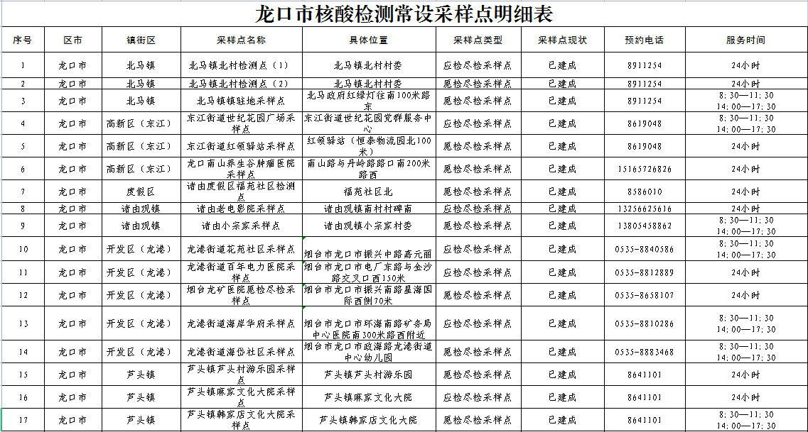 为方便广大群众进行核酸检测,现将龙口市核酸检测常设采样点有关信息进行公示。
