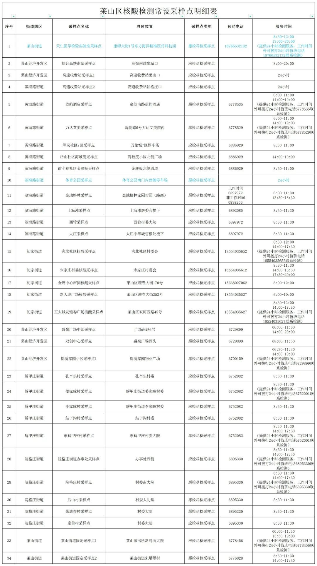 莱山区:关于更新全区核酸检测常设采样点的公告