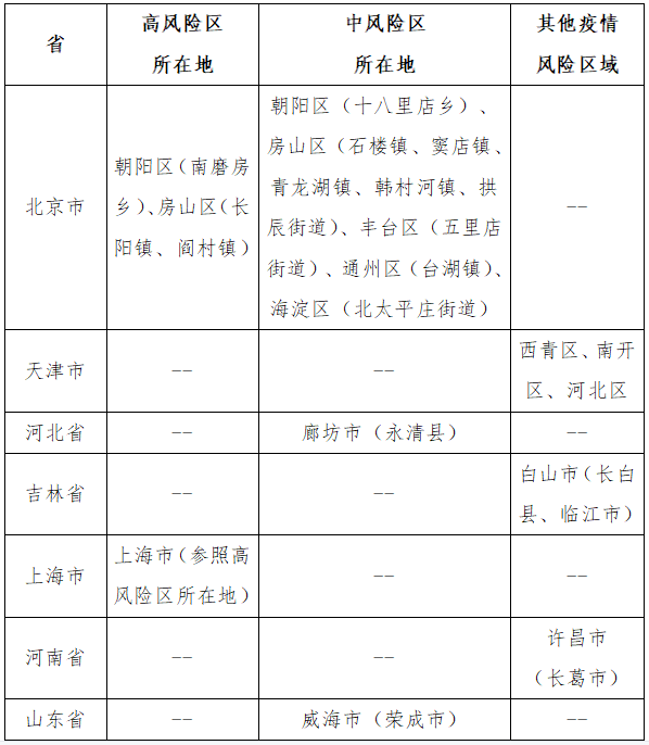 中高风险区所在地及其他疫情风险区域