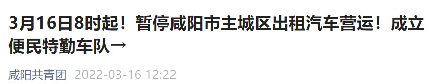 咸阳市疫情防控指挥部决定成立便民特勤车队,自2022年3月16日8时起,抽调100辆出租车、50辆大巴车,主要为市民就医送医等应急运输保障提供方便。服务范围为咸阳市主城区。急重症患者请拨打120呼叫救护车。