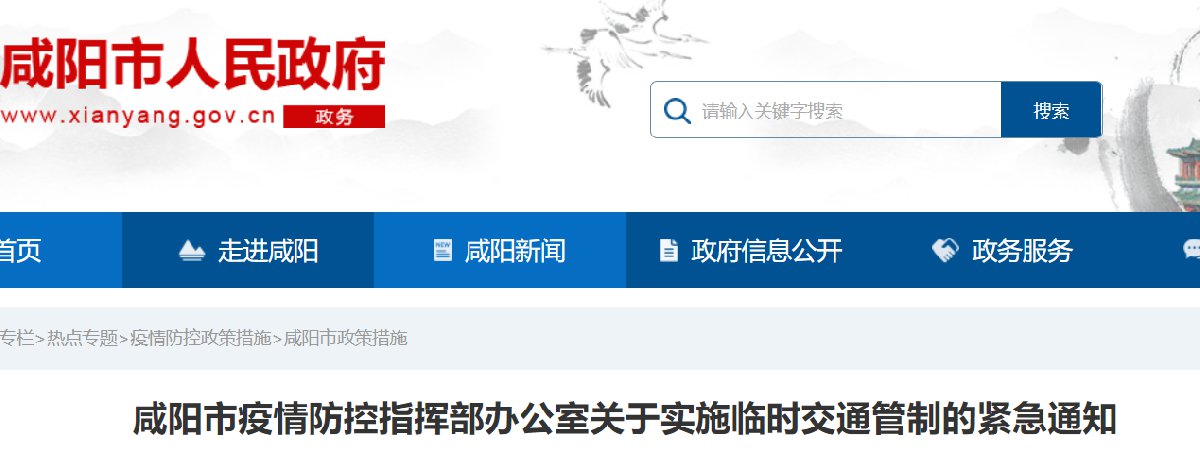 为深入贯彻落实“外防输入、内防反弹”总策略和“动态清零”总方针,全力做好我市疫情防控工作,有效阻断疫情传播途径,咸阳市新冠肺炎疫情防控指挥部决定,自2022年3月15日12时起,我市实施临时交通管制,现就有关事项紧急通知如下: