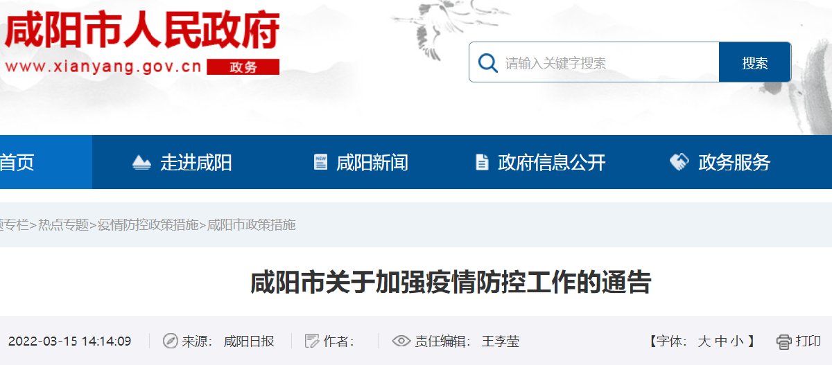 咸阳市关于加强疫情防控工作的通告