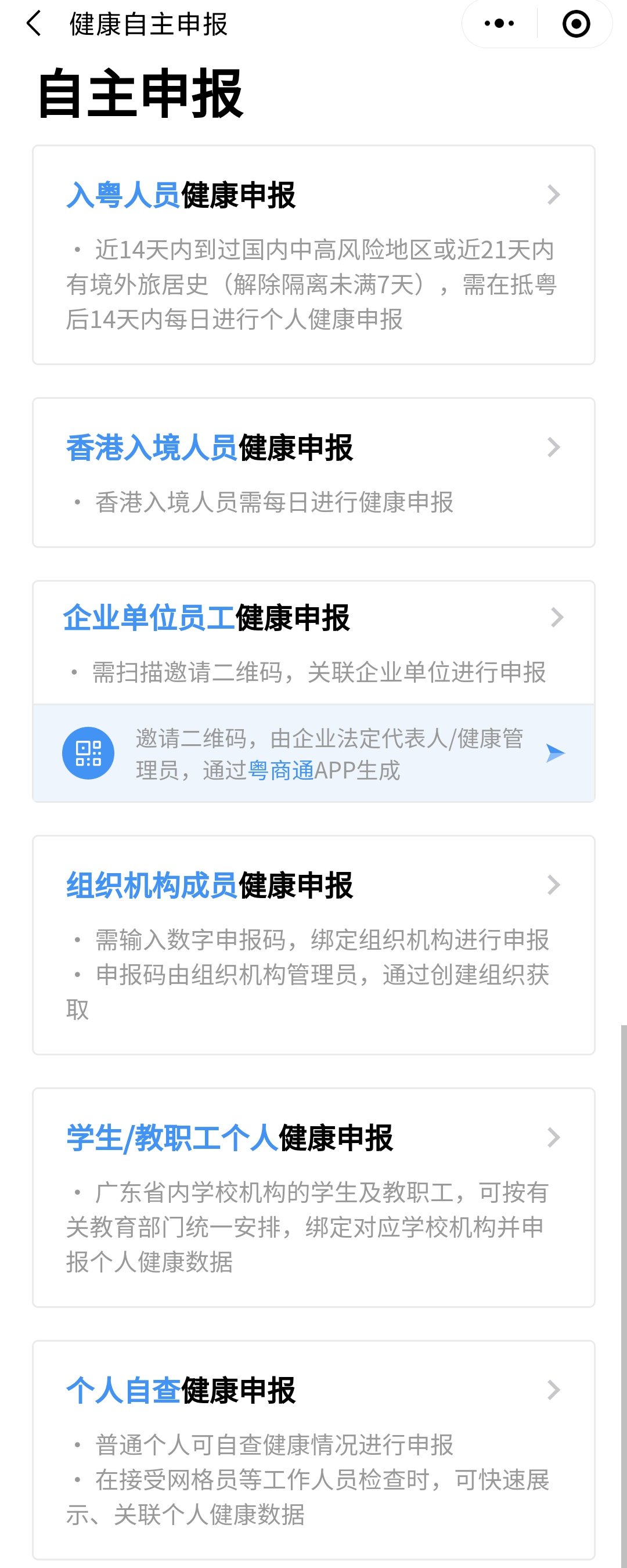 ①入粤人员健康申报:近14天内到过国内中高风险地区或近21天内有境外旅居史(解除隔离未满7天),需在抵粤后14天内每日进行个人健康申报。