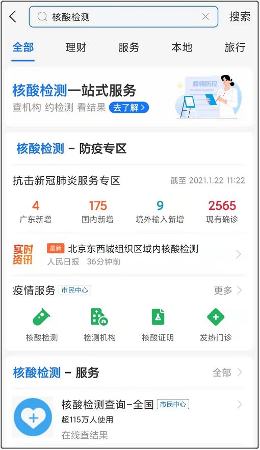 支付宝和阿里健康一起推出的「疫情服务直通车」,包含了超过15种疫情便民服务,上支付宝搜「疫情」可一键直达。