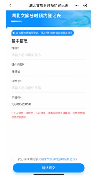 游客到达景区场所后,微信“扫一扫”功能对预约景区场所入口处“湖北文旅分时预约”二维码进行扫码;如游客既未预约过且未登记过,首次需要游客提交个人身份信息。