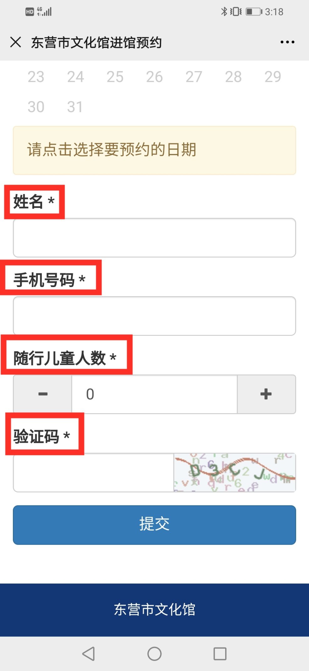 2、根据提示选择预约的日期(提供七日内预约)并填写相关信息(随行儿童数最多为3)