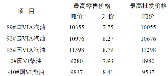 根据国家发展改革委公布的国内成品油价格调价信息,现将我省汽、柴油最高零售、批发价格公布如下,自2022年4月15日24时起执行。